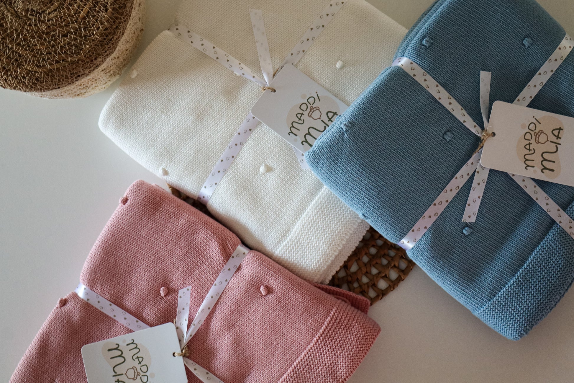Manta macia e natural, feita para envolver o bebé em conforto e calma - como um ninho no meio do bosque.